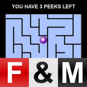Flash and Math PeekAMaze – a new twist on the classic maze game. You see only a small portion of the maze at each point. You can 'peek' around by dragging the maze and try to remember your way out. But the number of peeks is limited. Several levels of difficulty, at each level an unlimited number of perfect mazes can be generated. Steer the ball through the maze by moving your finger around a cool and easy to use steering wheel. Complete source code for this app can be downloaded from flashandmath.com.