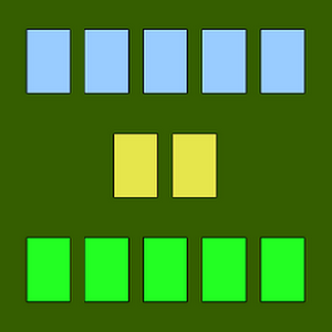 Speed is played with a standard 52 card deck for two players. The object of the game is to get rid of all your cards before your opponent. Ace is counted either as 1 or higher than K. The game proceeds as follow. 1) Deal each player five cards. 2) Place four piles of cards face down in the middle of the table. The first and the last pile has 5 cards each served as flip piles. The second and the third pile has one card each. 3) Divide the remaining 30 cards in two piles each with 15 cards and place beside each player as their draw pile. 4) Each player then simultaneously flips over the middle two cards as the discard piles in the middle of the table. 5) Each player tries to discard a card face up from their hand onto the top of a discard pile. The card must be one level higher or lower than the top card. When you discard a card, you immediately draw a card from your draw pile. You repeat this step as long as you have a card to discard. 6) When both players cannot play a card, They each flips over a card from the first and the last pile. When the first and the last pile runs out, the middle two piles are turn upside down and become the first and the last pile for flipping over. 7) The first player who can get rid of all his/her cards must then slaps both discard piles and declare “Speed”. In this game you play against a robot. To play the game:- 1) Press button Start to deal and arrange cards. 2) Press a card to play. The system will automatically draw a new card for you. 3) When both players have no card to play, one card from each flip pile will be flipped over onto the discard piles. 4) You and the robot repeat step 2 until a player runs out of card and becomes the winner. 5) To play next hand, press button Start.